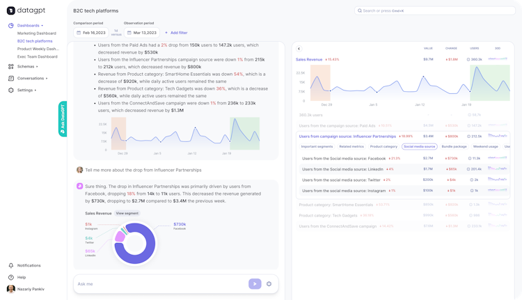 DataGPT transforms data analysis from complex and time consuming to as effortless as having a conversation.