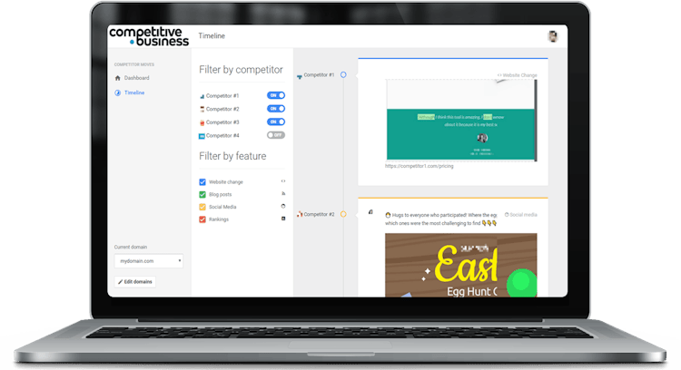 Competitors App is a competitor monitoring solution for tracking the marketing strategies of other businesses in the industry. The cloud-based app logs competitor changes including emails, newsletters, blog posts, social media posts, website changes, SEO strategies, keywords, and ads, and presents them to users within the Competitors App timeline, or via email updates. Competitor changes can be viewed in real time and the timeline can be filtered to show specific competitors, feature types, and more.