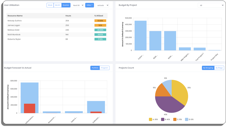 It provides a tool that helps users track monthly actuals against budgets and manage business financial performance. It also lets employees view a real-time overview of the financial health in the business budget overview dashboard. Our software quickly evaluates project performance across the entire portfolio and provides clear reports with real-time visibility into potential risks and the overall quality of all initiatives.