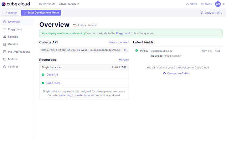 Cube Cloud’s user interface