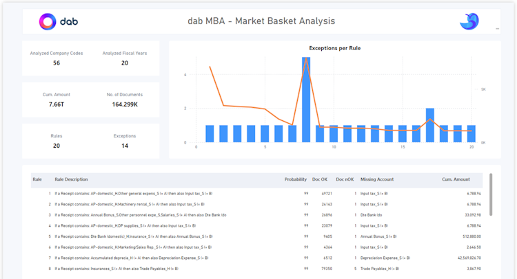 dab AnalyticSuite features AI-enabled analytics that streamline false positives and enhance precision, particularly for duplicate payment detection and SAP authorization checks. The software includes automated data preparation capabilities and supports flexible result delivery through various visualization tools including Microsoft Excel, Power BI, and Tableau.