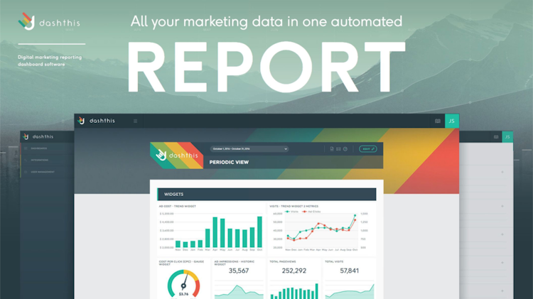 DashThis is a cloud-based marketing reporting dashboard solution which allows users to create custom dashboards for SEO, SEM, social media, analytics, and display advertising reporting. The platform allows users to integrate multiple data sources in any combination to display all of their key marketing data in a single automatically-updating reports, with automated distribution to stakeholders via email.