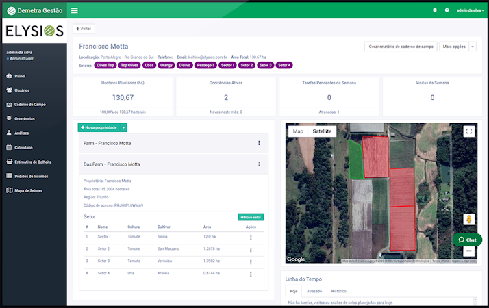 Demetra Integrador is web-based software for farm property management that offers a mobile application with offline access. The tool can capture data from third-party weather stations and enable the digitalization of records and activity planning.