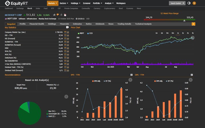 EquityRT integrates with Microsoft Excel through an Excel add-in, enabling users to perform customized financial analysis within their familiar spreadsheet environment. The platform's API capabilities support automated data delivery solutions, allowing for integration with third-party applications and customized data workflows. The system performs over ten thousand automated checks and validation processes to ensure data accuracy and reliability. The web-based architecture ensures accessibility with minimal data usage, making it suitable for remote work environments while maintaining comprehensive functionality. The platform is designed with an intuitive interface that reduces the learning curve for new users while providing the depth of functionality required by experienced financial analysts.