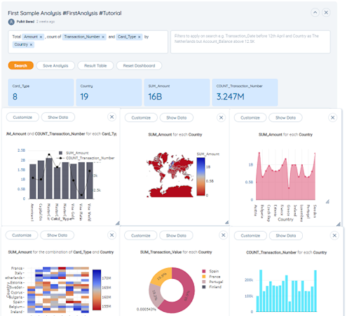 Since no prior programming knowledge is required, nor is any extensive training needed, anyone can perform a query on the database. The search terms are entered in English, and the platform converts the query into an SQL query to search through the linked databases. The platform generates a BI dashboard to present the data in various ways. Analysis filters make it possible to refine the resulting selection. For example, users can quickly see the products that contribute the most to their sales revenue or view the customers with the most sales in a particular region. Users can select an area to view the data in more detail within the dashboard. Charts can be customized by, for example, choosing different variables for the X and Y axes or changing the colors and the title.