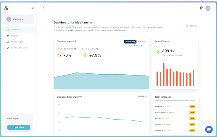 &facts uses AI and ML to gather real-time data from sources including social media, e-commerce, search engines, and more. It allows users to see what customers are doing right now and identify market trends in real-time, providing actionable insights that help informed decisions about product launches and marketing strategies.