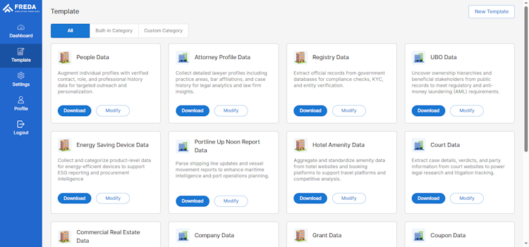 Users can extract any information they need from different sources by selecting the necessary attributes and validating them to ensure accuracy. It offers built-in bots, custom workflows, and intuitive interface. The dashboards allow users to track their data quality, and request new attributes, workflows, or sources.