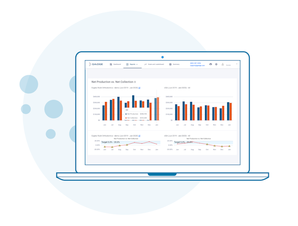 Fully integrated with the leading practice management systems, Gaidge provides dashboards, benchmarks, and comparisons, allowing users to take performance to the next level.