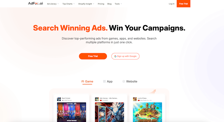 AdFox (formerly GoodsFox) is an ad intelligence and creative search platform designed to help marketing teams analyze competitor advertising across games, mobile apps, and websites.