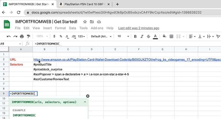 ImportFromWeb is a simple function that extracts data from any website directly into Google Sheets and the most powerful part of the add-on is that it can also import and export any data source as a CSV, which means you can manage your data in a variety of ways.