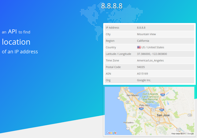 ipapi provides web analytics with IP address lookup and location API. The API can be used to find the external IP address programmatically, and lookup location information like city, country, latitude, longitude, timezone and ASN associated with an IP address. Both IPv4 & IPv6 formats are supported.