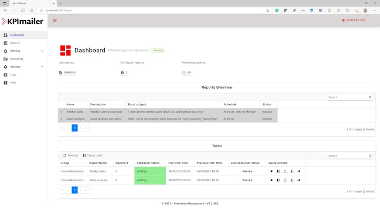 KPImailer’s user interface