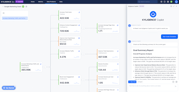 -Kyligence Zen unifies data sources into a central metrics hub. It simplify your objectives tracking for precise decisions.