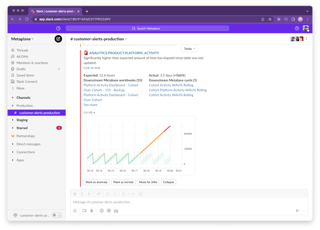“Slack is our primary mode of communication, and Metaplane can send alerts directly to Slack.”