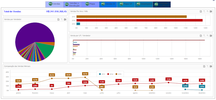 MyBI is a dashboard tool for software companies that makes it possible to generate internal indicators in different formats, such as graphs, tables, maps, etc. With integration into ERP and CRM systems, the tool also allows the creation of spreadsheets and pivot tables (BI) in addition to its own dashboards. Companies can use the tool to analyze, compare, and cross-reference data in order to track sales, productivity, customer service, and more. Available only in Portuguese, MyBI offers various functionalities, such as the ability to customize products with the logo and brand name, access data online and offline, and export files in Word, PDF, HTML, and TXT.
