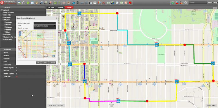 Professionals can view devices' physical locations, access building floor plans, and measure distances between objects, ports, or associated connections. The application allows users to model or visualize types of ducts, buffers, splices, splitters, towers, poles, antennas, and other objects on diagrams. Supervisors can also use netTerrain OSP to track inside plant cables or assets and track current temperature or running power within data centers.