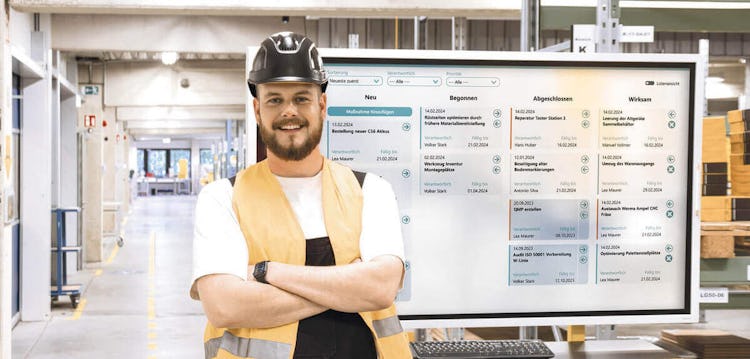 Customers can choose the key figures they want displayed on their dashboards. Additionally, information can be relayed to over 100 connected IT interfaces via touchscreens, creating an intuitive user interface for employees in production and warehousing. This makes controlling production machinery as simple as using a smartphone.