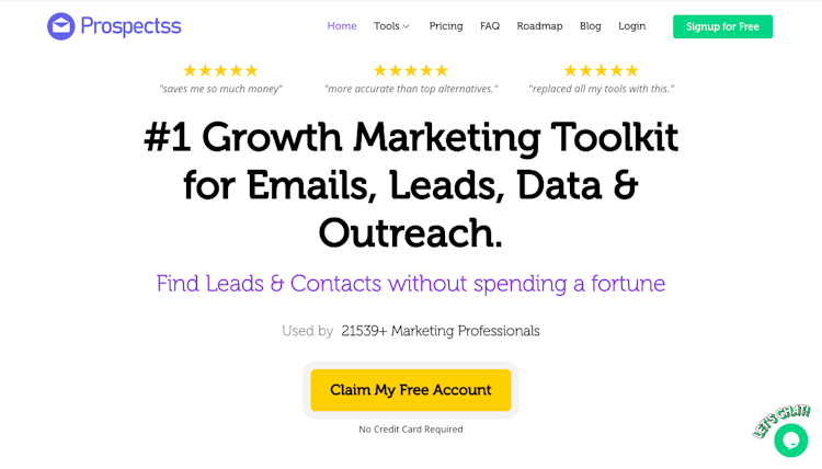 Get your hands on the top secret Growth Marketing toolkit used by all top growth marketers. We at Prospectss.com offer you the most accurate, affordable & easy to use tools. Find Leads, Connect & Get Business.