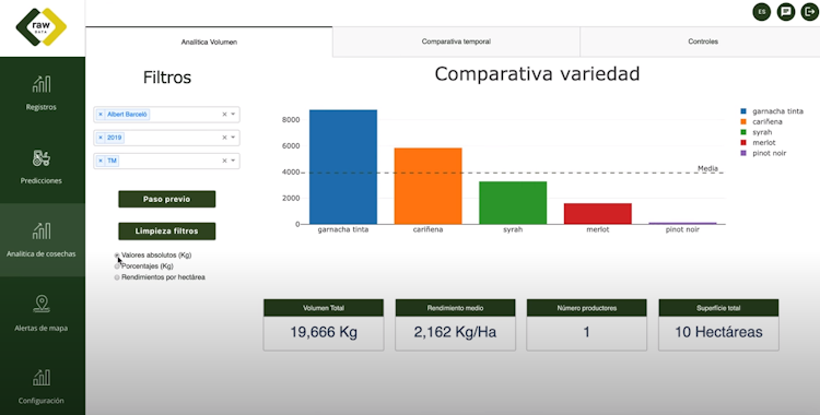 Raw Data AG grants role-based permissions to purchasing companies, suppliers, and technicians and facilitates direct communication among external and internal stakeholders. Users can automatically import data from Microsoft Excel and maintain planning, completion, and audit records on the platform. Managers can also track production status through various indicators such as yields per hectare, variety, or group of varieties and calculate the evolution of production by date and volume.