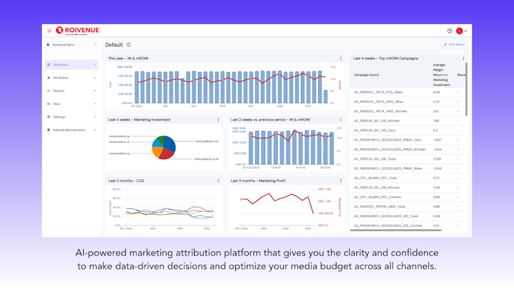 ROIVENUE is an award-winning analytics, attribution and optimization suite for ecommerce. It helps marketers to accelerate revenue growth and increase marketing profit through data integration and understanding of multi touch journeys.