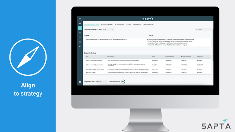 1. Foster strategic alignment across your organization with SaptaAlign. Establish top-to-bottom alignment by connecting corporate strategies to OKRs.