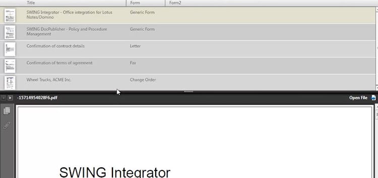 Using SWING PDF Converter, managers can create PDF files including invoices, certificates, HR forms, purchase orders, and other documents from Lotus Domino web applications. The platform exports required documents in the form of a package or container, which contains emails, messages, files, and notes with details such as date, from, subject, and to for users to sort, navigate, and search based on requirements.