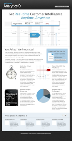 The Webtrends website analytics platform is a complete digital optimization tool for your brand that establishes key audience metrics and 3rd party insights into what's being said about your enterprise and where it's being said. Webtrends measures social media and mobile users to give you a more indepth grasp of your audiences. Once identifies, Webtrends helps you segment these users by demographics, age etc., so you can in turn create strategies to reachout and maximize your personal online selling potential.