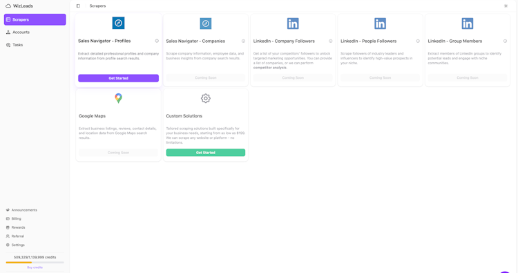 WizLeads is a cloud-based LinkedIn Sales Navigator data extraction software designed for lead generation specialists and marketing teams in high-volume outreach environments. The platform automates the export of large volumes of professional profiles from LinkedIn Sales Navigator into comma separated values format. The solution uses an account-less approach that operates without direct connection to LinkedIn accounts. This design reduces the likelihood of profile restrictions or other service limitations.