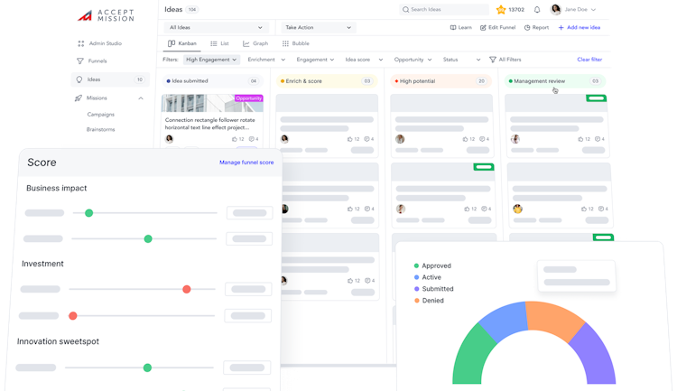 2. Effective Idea Management: With Accept Mission, you can easily score and select the best ideas from a plethora of suggestions. It provides a structured approach to manage, track, and develop ideas from inception to approval.