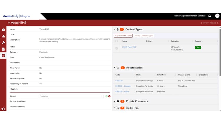 Access Unify | Lifecycle is a cloud based records retention and privacy management software solution that enables organizations to maintain defensible audit ready retention schedules supported by continuously updated regulatory intelligence and expert guidance. The platform combines automated legal research updates with managed expert services to ensure retention schedules remain accurate and aligned to current requirements across multiple jurisdictions. It is delivered via secure cloud environments featuring strong access controls and encryption.