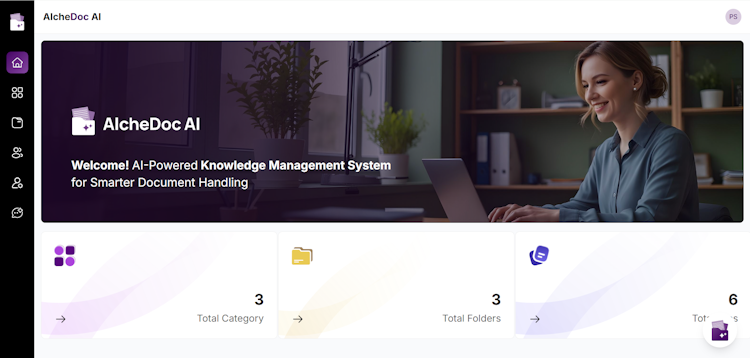 AlcheDoc AI is a knowledge management system that centralizes document organization, search, and retrieval through artificial intelligence technology. The system employs algorithms to categorize documents intelligently, enabling users to locate files based on keywords, metadata, or specific content within documents.