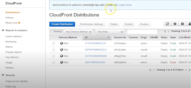 Amazon CloudFront is a content delivery network (CDN) that helps businesses manage high-speed and low-latency transfers to deliver videos, applications, data, and APIs to end-users. It lets staff members provide a flexible and layered security perimeter to protect against network attacks and application layer DDoS attacks.