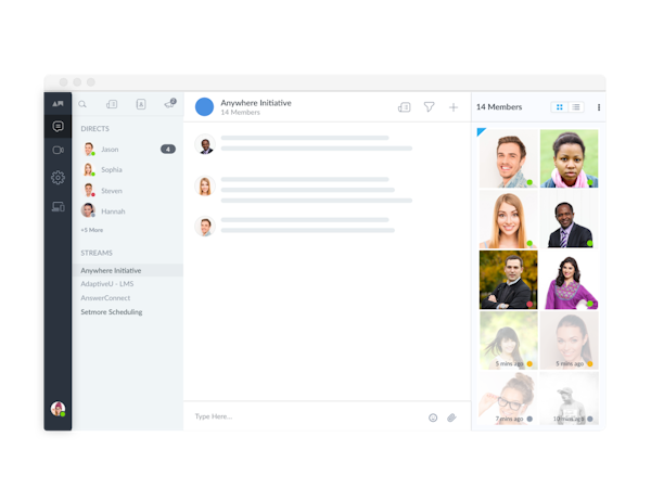 With AnywhereWorks, all chats are stored in one dashboard and unread conversations are highlighted for ease-of-use. AnywhereWorks allows users to share documents, images, and other files using an integrated file-sharing feature to help teams collaborate when working remotely. Users can also keep up with day-to-day operations using a status feed. For team availability, profile statuses will display whether a team member is online, available, on a mobile device, or in a meeting.