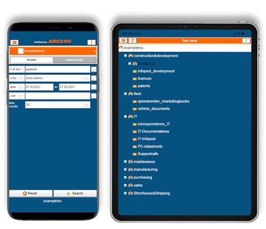 The bitfarm-Archiv DMS mobile app provides access to all documents on the go and allows businesses to archive, send and edit documents quickly. The mobile app can be thought of as a document management system with the most important functionality in comparison to our main windows-client.