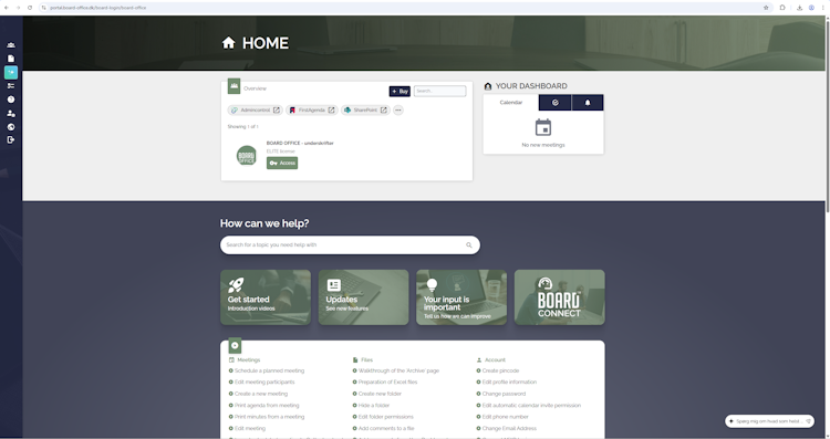 An integrated knowledge repository supplies governance templates, bylaws, and procedural checklists aligned with Excellent Governance standards, supporting consistent professionalization of board documentation and processes. The platform offers unified authentication for multiple board engagements and extends to associated data room functionality. Integration with BOARD Connect and compatibility with BOARD DNA capabilities enable extended collaboration and insight. Hosted exclusively within Denmark, the solution employs encryption protocols for both data storage and transmission, combined with mandatory two-factor authentication for all user access. Security certifications and compliance standards appropriate for sensitive corporate governance information are maintained through ongoing validation and audit processes. The architecture accommodates controlled external access through a permission framework and leverages standard web technologies to ensure compatibility with contemporary browser environments.