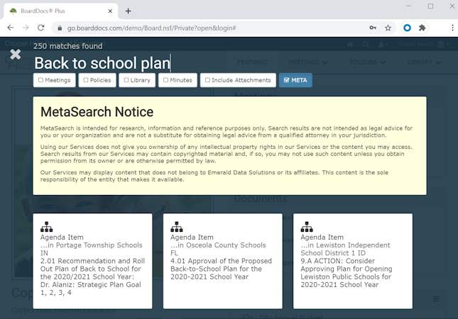 BoardDocs Plus is an extension to BoardDocs Pro wherein each governing body in the organization can set up separate confidential meetings with restricted administrative access, usually required by midsize and enterprise level organizations.