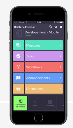 Briefery is a mobile-first workflow app which offers workflow management, task management, document libraries, and real-time communication. It serves organizations by supporting collaboration and identifying bottlenecks. The platform has a functional module for various types of messages based on attributes such as the level of urgency, delivery confirmation, asking an employee to perform a task or requesting a response from a group of employees. The hierarchical structure ensures efficient communication with thousands of employees.