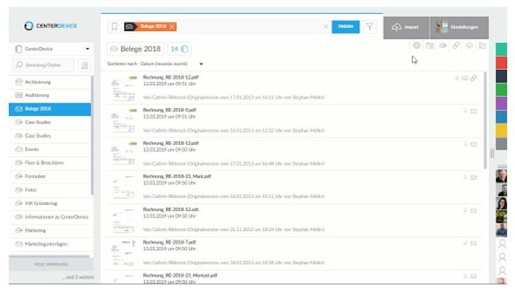 CenterDevice is software for document management, which enables the secure management of sensitive documents in accordance with GDPR, GoBD, and C5 guidelines. For this purpose, users can access various functions to archive, exchange, and manage documents.