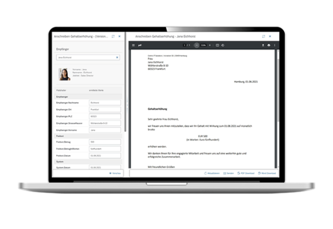 • The integration of the existing SAP HCM or SAP SuccessFactors authorization concept prevents the unauthorized creation of documents and the editing of document templates, thus ensuring compliance with company policies and legal regulations when creating documents.