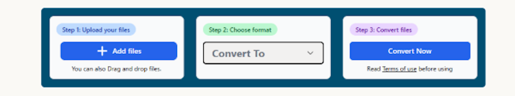 Document conversion handles formats including DOC, DOCX, PDF, RTF, TXT, ODT, HTML, XML, CSV, XLS, XLSX, DBF, PPT and PPTX to enable transformation among office suite, open document and portable document standards. The conversion workflow follows three steps: uploading files via a drag-and-drop interface or manual selection, specifying an output format from the available options and initiating cloud-based processing. Additional PDF functionality includes merge, split, compress and password protection tools as well as bidirectional conversion between PDF and other document or image formats.