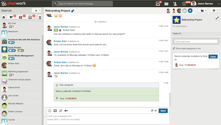 Chatwork provides teams with a new, streamlined way to work. There are chat rooms for each team project. Conversations about each project stay organized in their separate rooms. Every team member can see progress, details and decisions and participate in real-time. ChatWork represents the common ground for teams to bond, stay in sync and work happily together.