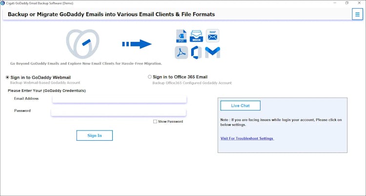 Cigati GoDaddy Email Backup Tool overview