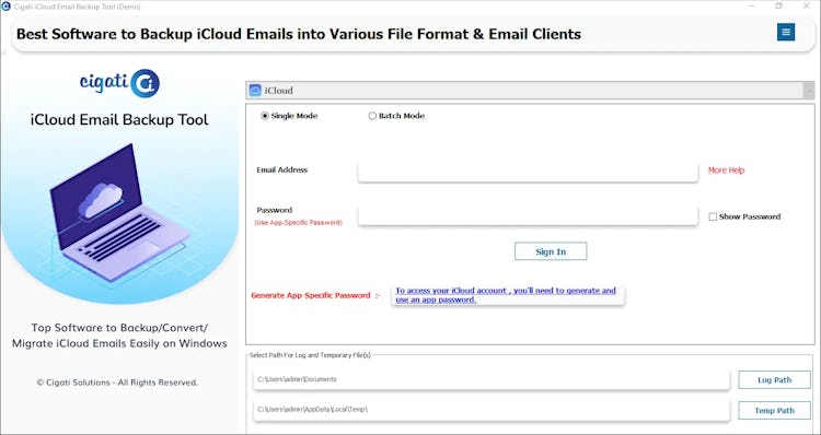 The Cigati iCloud Backup Tool is a specialized email backup and migration solution for Windows and Mac systems. It serves IT professionals, system administrators, and enterprises that require systematic archival of iCloud email communications or migration between platforms and file formats. The application addresses technical challenges in iCloud email management by enabling comprehensive backup of mailbox contents to local storage or transfer to alternative email clients and repositories.