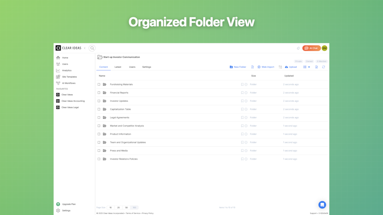 Clear Ideas integrates with industry-leading Large Language Models to power its AI capabilities while maintaining data security within a private environment. The platform offers Clear Ideas Sync for seamless integration with existing systems and provides API capabilities that enable organizations to connect their private data sources. The software supports cross-dataset intelligence applications, allowing users to build AI workflows once and apply them to any new dataset—particularly valuable for recurring analysis processes such as due diligence, compliance reviews, and financial analysis. The platform's analytics features provide real-time engagement metrics and custom reporting capabilities that reveal how stakeholders interact with shared information, enabling data-driven decision making while maintaining the security integrity of sensitive business information.