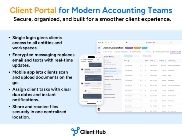 Client Hub is accounting practice management software built for accounting and bookkeeping firms that want more structure, visibility, and consistency in their daily operations. The cloud-based platform brings together work management, client collaboration, and document organization into one shared workspace.