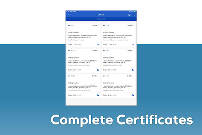 Clik Cert (Field) is the mobile certification solution for your engineers to use whilst onsite. Fill in, edit and complete digital gas certificates all from your mobile device and make paperwork straightforward. The apps connect directly to your Clik Cert database, so you can take your work offline and manage certificates wherever you are.