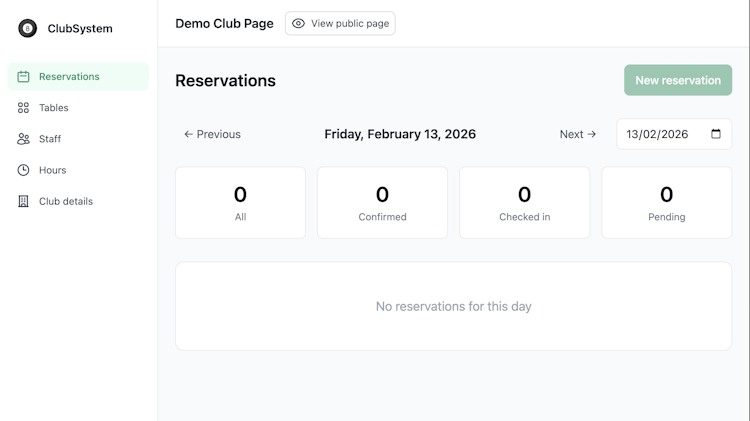 ClubSystem is a cloud-based booking and management platform built for venues that rent bookable resources such as club tables, rooms, or court. Users can create a branded online booking page for each location, accept reservations 24/7, and keep availability accurate with real-time scheduling.