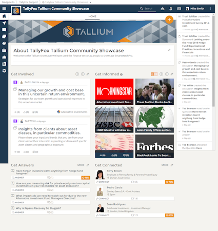 TallyFox Tallium Community is a business ecosystem platform that improves knowledge exchange, content management and communication, fast and effectively for your business community and stakeholders.