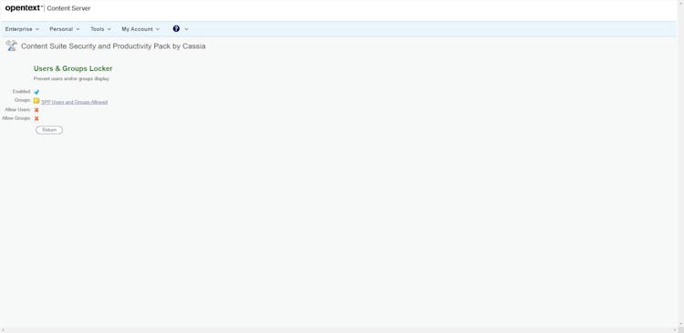 Content Suite Security and Productivity Pack’s user interface