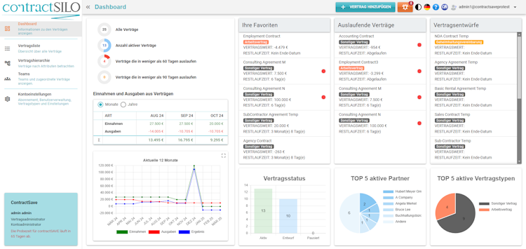 It enables users to identify contracts that require attention and take immediate action. With contractSILO, users can see favorite, expiring, and draft contracts all in one place. The informative and feature-rich dashboards provide clear insights into the income, expenses, contract types, key customers, and contract status, allowing users to make informed decisions. It allows administrators to create personalized filters for contract lists, customize the fields, and perform full-text searches for contract retrieval.